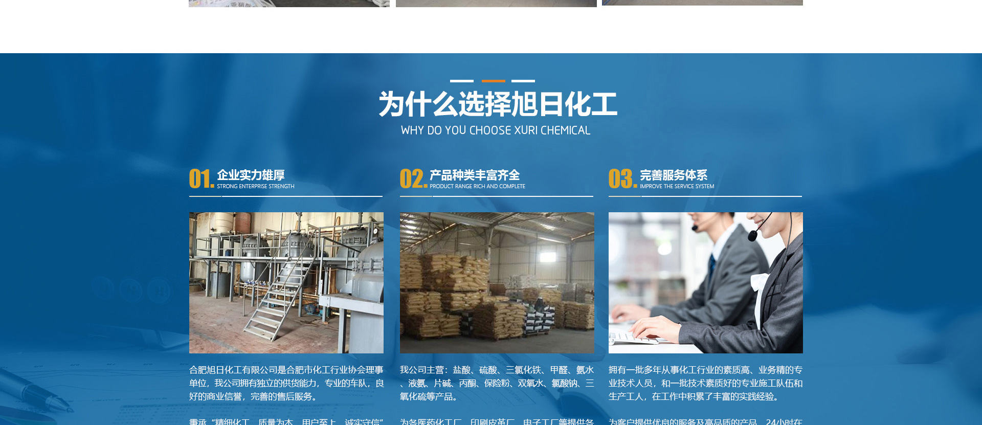 合肥旭日化工有限公司是合肥市化工行業協會理事單位,該公司擁有獨立的供貨能力,專業的車隊,良好的商業信譽,完善的售后服務。秉承“精細化工、質量為本、用戶至上、誠實守信”的企業理念。從事各類化工溶劑和原料的國內貿易;為各醫1藥化工廠、印刷皮革廠、電子工廠等提供各種化工原料配套采購。目前,公司正朝著以貿易為基礎、以實業為依托,全球采購、全國銷售,內外貿一體化,上下游一體化,具有綜合增值能力和復合競爭能力化工原料供應商。本公司主要經營的產品有:鹽酸、硫酸、三氯化鐵、甲醛、氨水、液氨、片堿等。合肥旭日化工有限公司為客戶提供優(yōu)良的服務及高品質的產品,本公司經銷的各種產品不僅在安徽地區深受用戶好評,而且具有很高的市場占有率,產品行銷全國各地區。